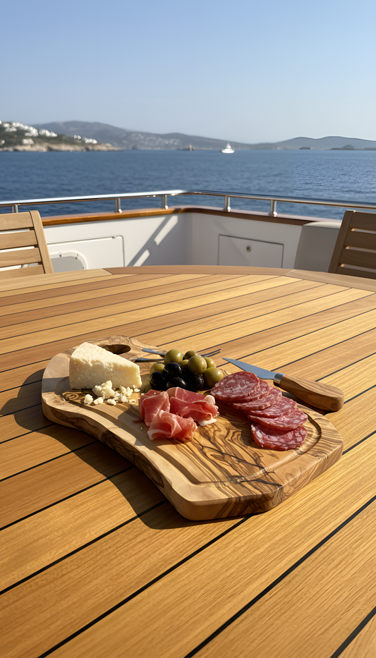 Planche à découper avec encoche en bois d'olivier - 52cm - Artisanale - Différentes tailles