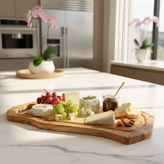Planche à découper avec encoche en bois d'olivier - 38cm - Artisanale - Différentes tailles