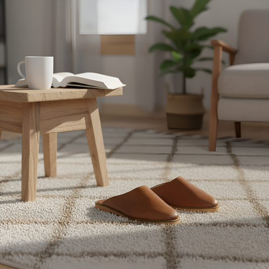 Babouche traditionnelle en cuir confortable et résistante pour femme – Coloris Marron Clair