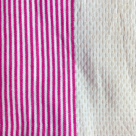 Handmade Fouta - 200 x 100 cm - Color White with pink stripe