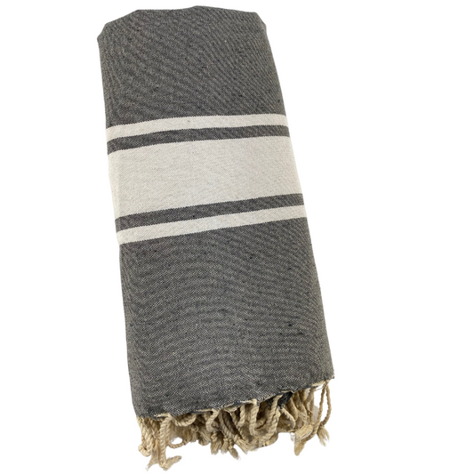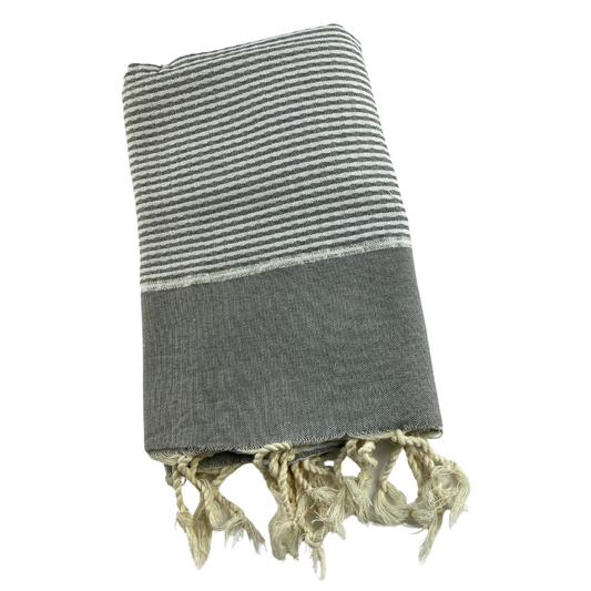 Handmade Fouta - 200 x 100 cm - Color Gray with white stripe