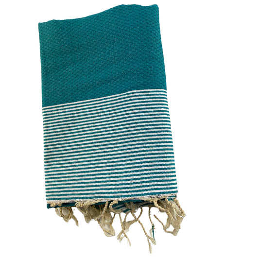 Handmade fouta - 200 x 100 cm - Color Turquoise blue with white stripes