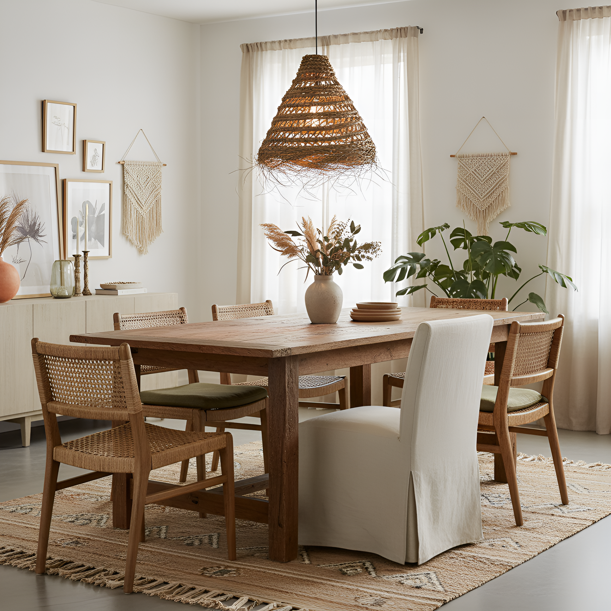 Suspension/Lustre forme en fibres naturelles de palmiers tressées